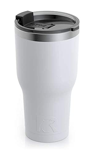 Exclusive Special RTIC Tumbler with Splash Proof Lid, 30 oz, White, Insulated Travel Stainless Steel Coffee Mug, Sweat Proof, Keeps Hot & Cold Longer